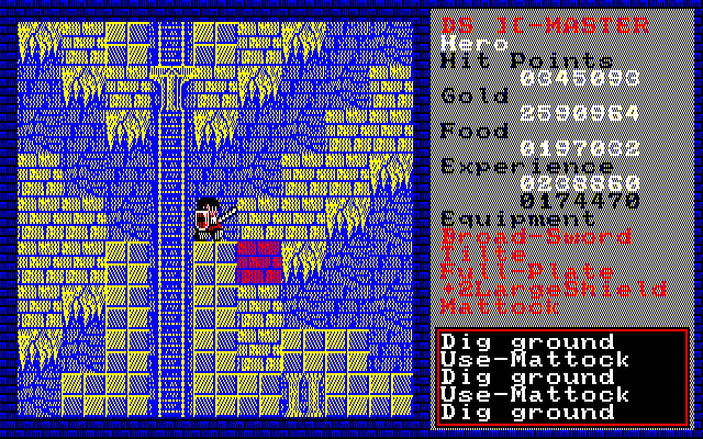 迷宮上層の通路にはワープゾーンがあるので、下層へ行くことが出来ません。 上部から下部に抜けるため、Mattockで地面を壊しておきます(赤い部分)。 |